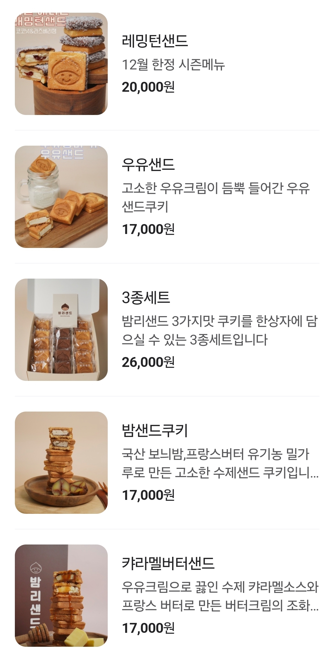 밤크림이 들어간 샌드가 시그니처이고 카라멜 샌드 우유크림 샌드등이 인기가 많아요.